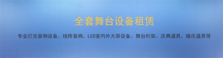 活動物料租賃公司,提供舞臺物料設備租賃 , 燈光音響設備租賃 , 經驗豐富 ,服務到位 ,海量策劃方案 , 舞臺搭建 , 個性化定制服務 , 歡迎咨詢